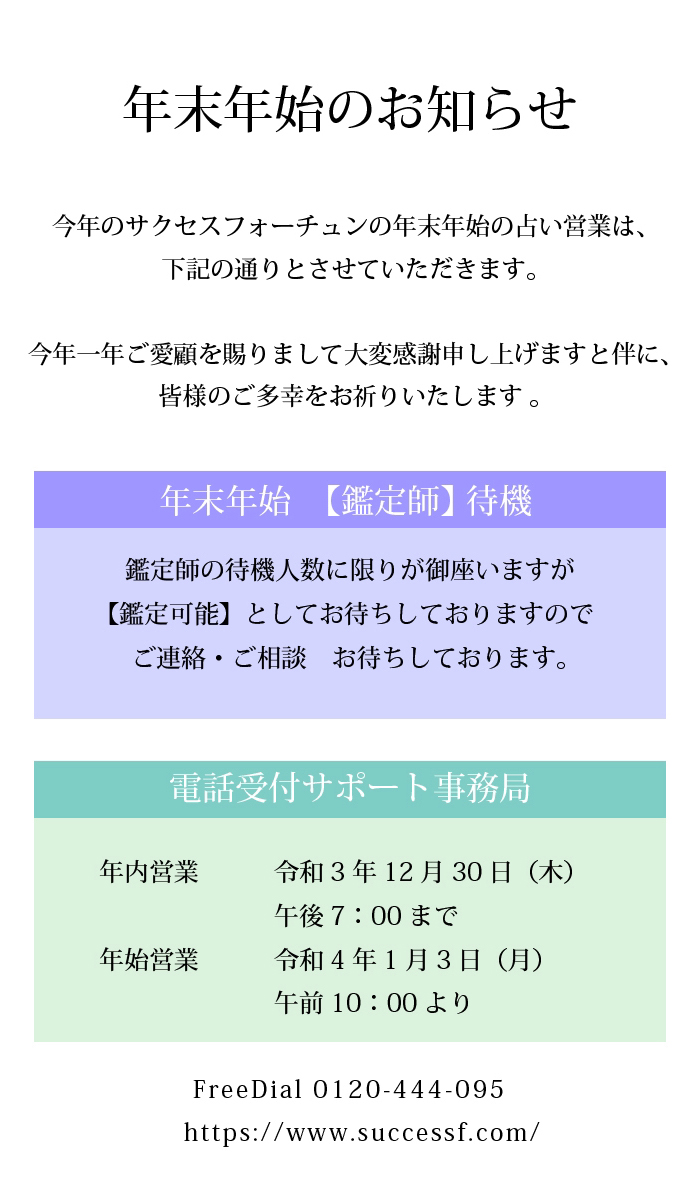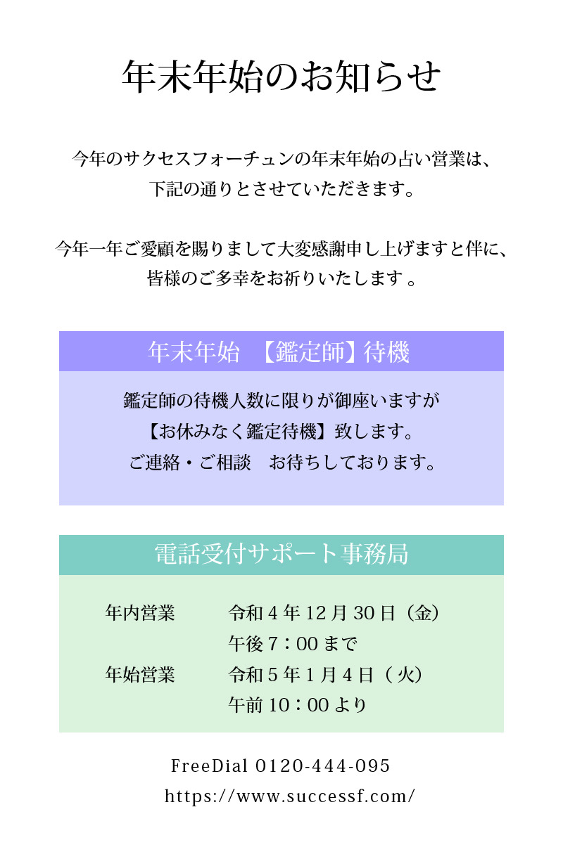 引き続き「電話占いサクセスフォーチュン」をどうぞよろしくお願い申し上げます。
